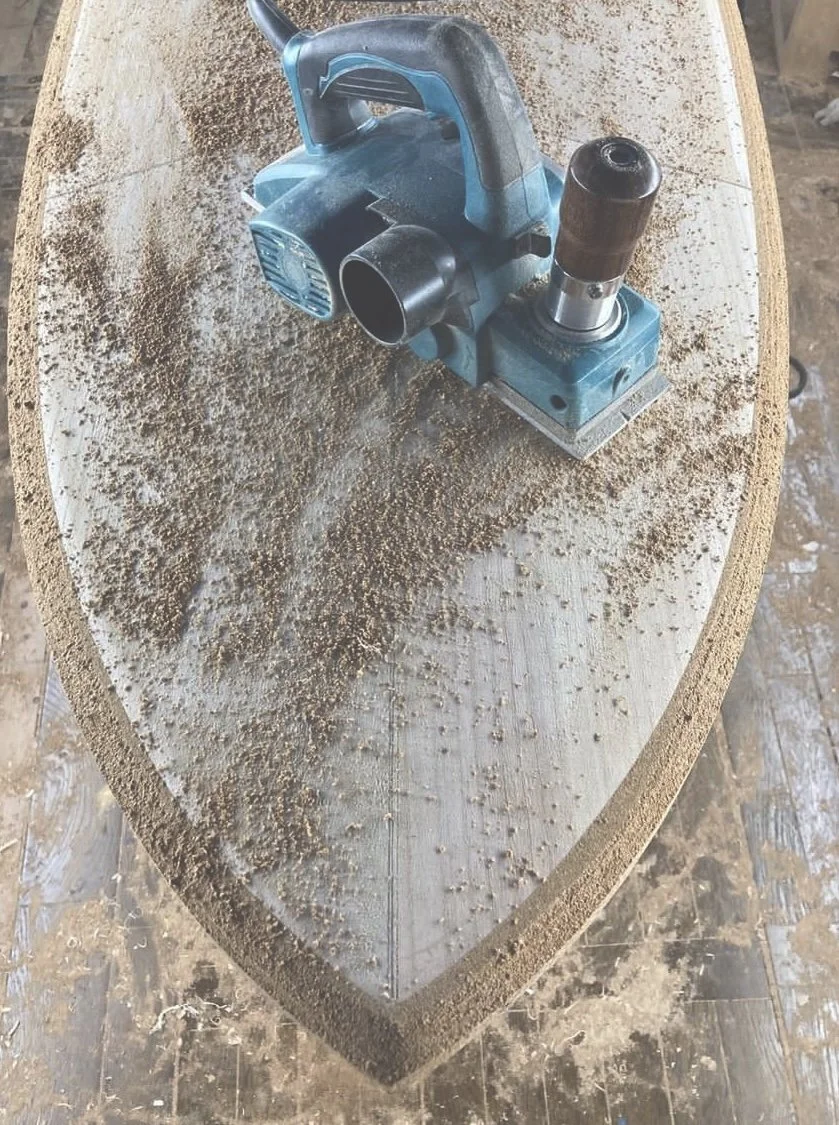 A quiet dialogue between shaper and wood guides the board toward its final form.