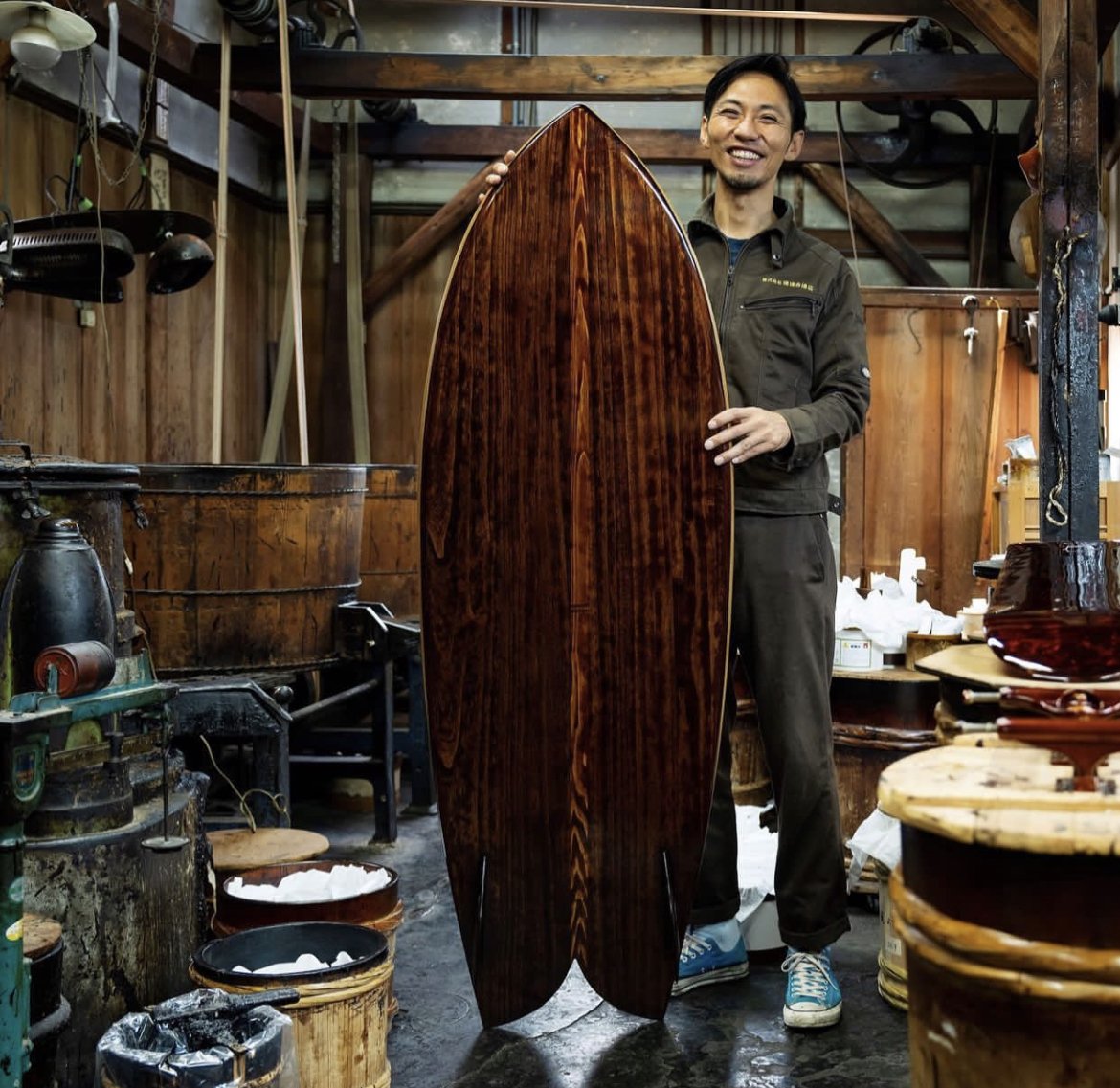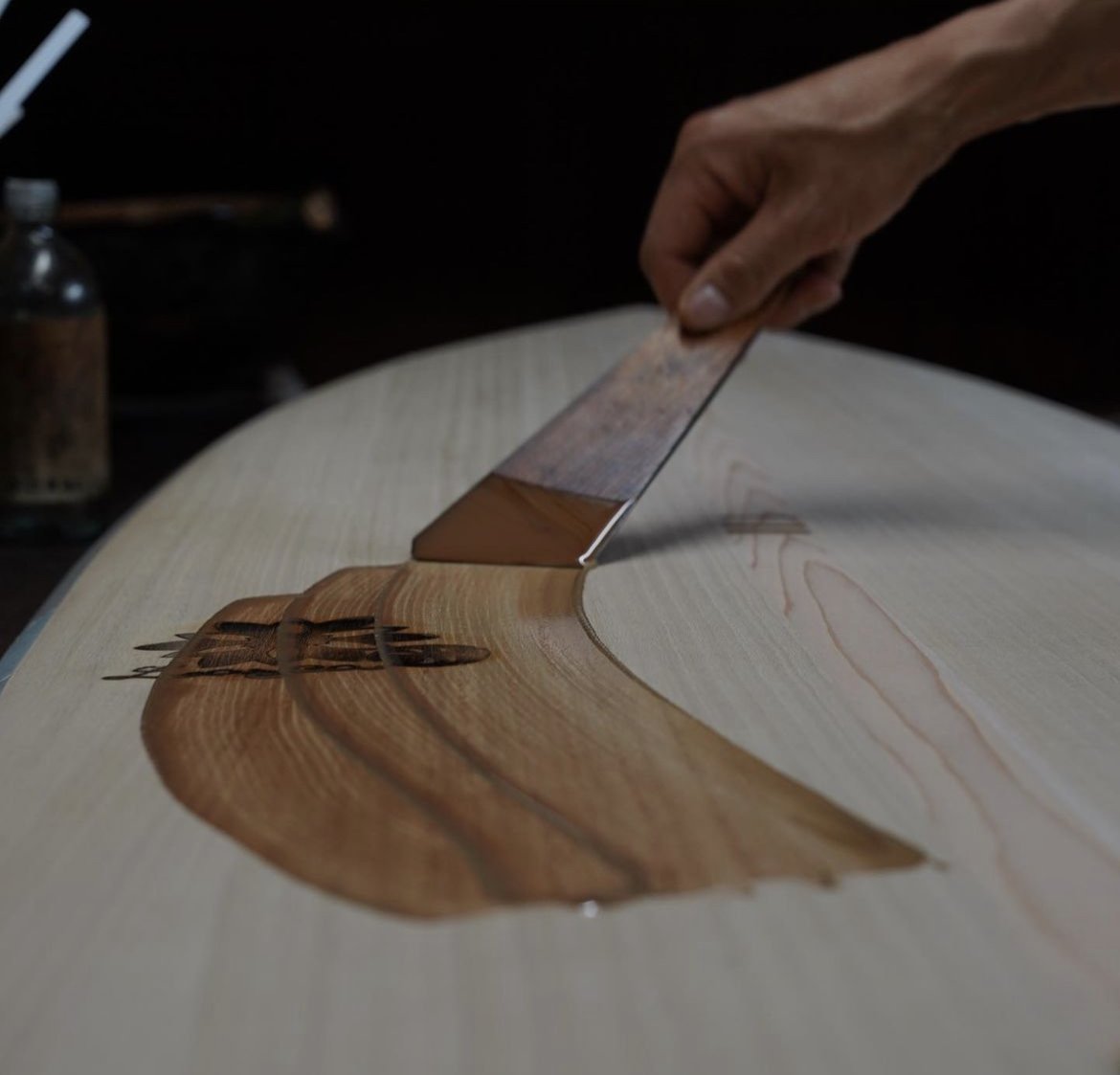 It forms a surface that is highly resistant to water, heat, and wear. Over time, the surface continues to change with use and exposure, developing a depth and patina that make each board increasingly its own. In the water, this refined finish allows the board to glide smoothly and freely.