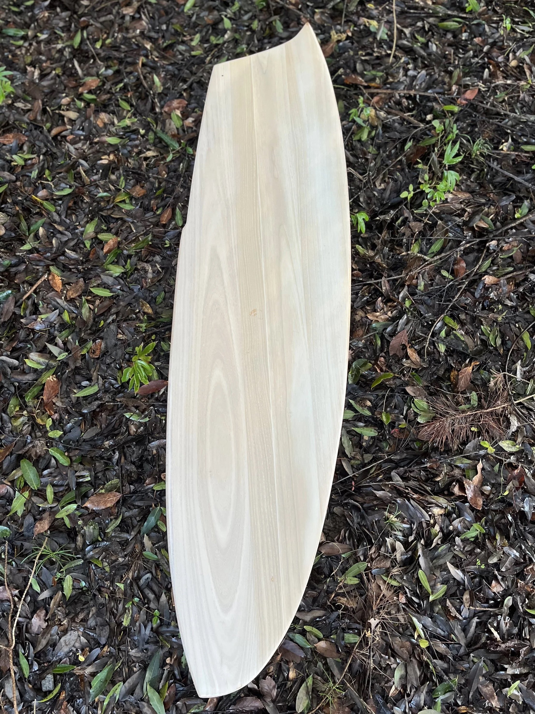 Light in weight and calm in character, paulownia has few knots, which makes the wood more stable and predictable to work with. Its softness allows it to absorb impact naturally, reducing stress on the board while improving overall flexibility. This balance of lightness, resilience, and workability makes paulownia especially well suited for small, high-performance surfboards.