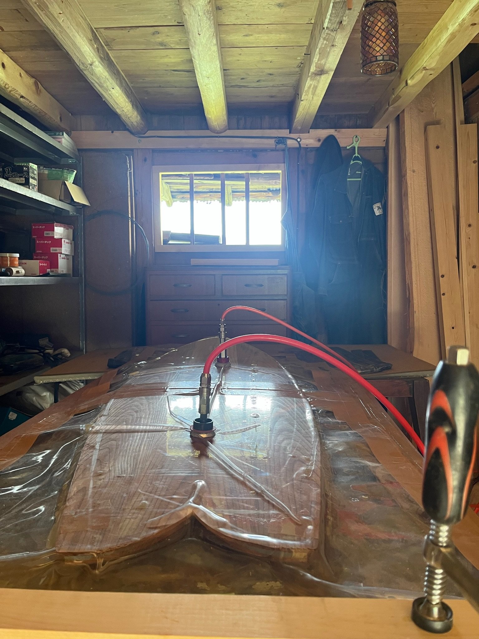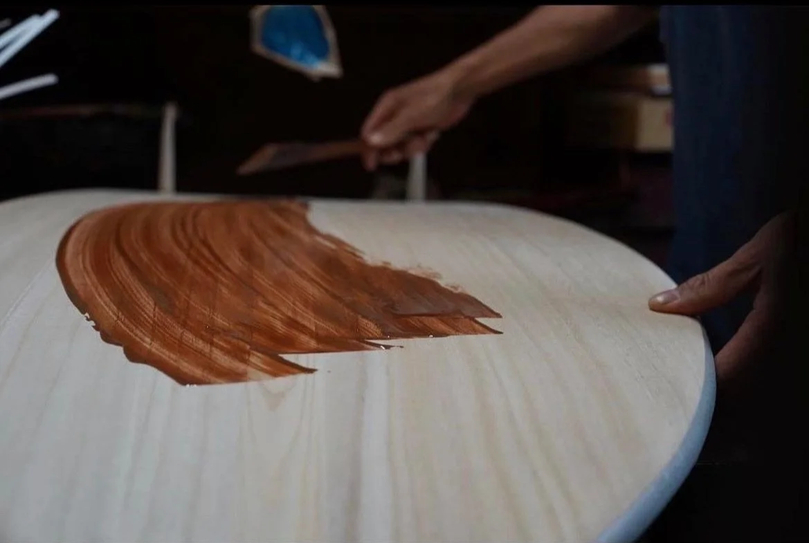 Surface is not decoration — it is longevity. During the program, you apply the first layers of oil or Urushi, learning how to properly seal and protect the wood. As each layer rests, we craft a wooden handplane together — allowing you to enter the water immediately while your surfboard continues its curing process. Additional finish layers are completed at home, ensuring the board matures properly before regular use.